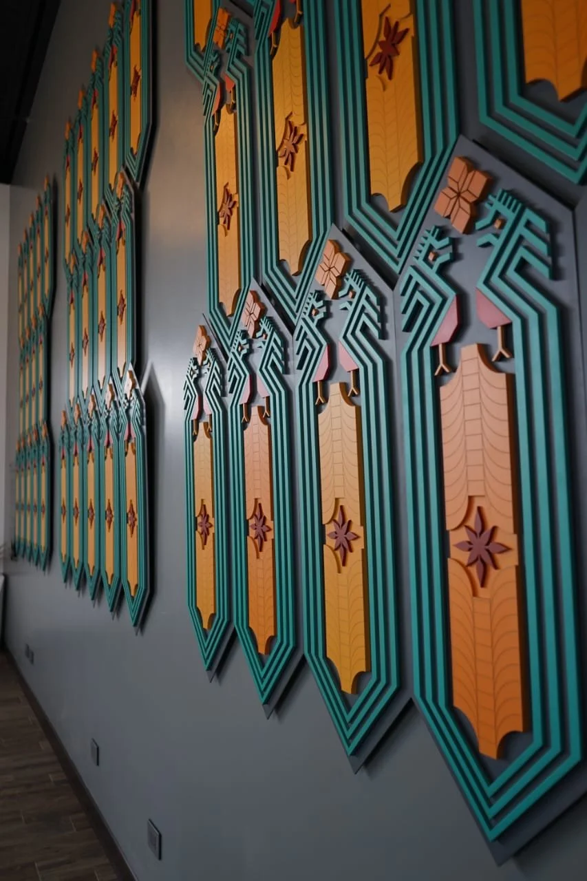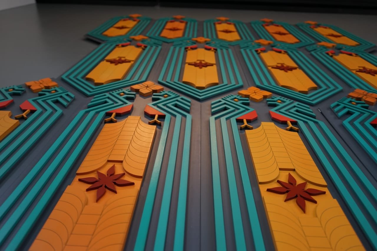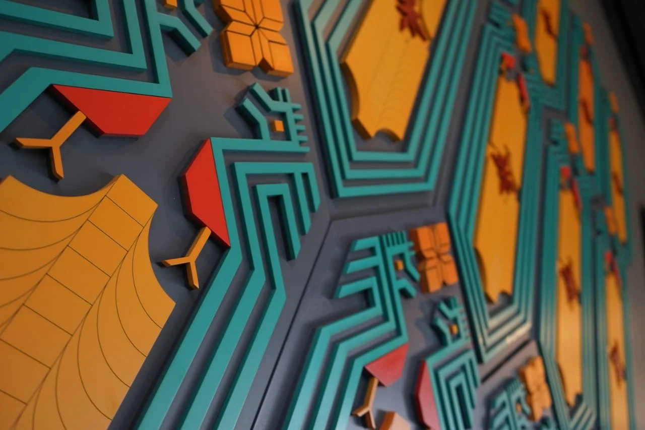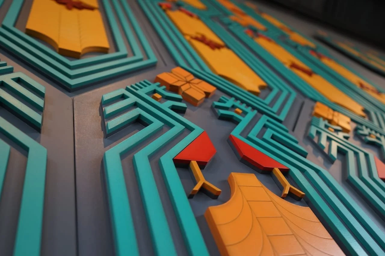Una pieza alegórica e inspirada en la geometría prehispánica y alusiva a los textiles.